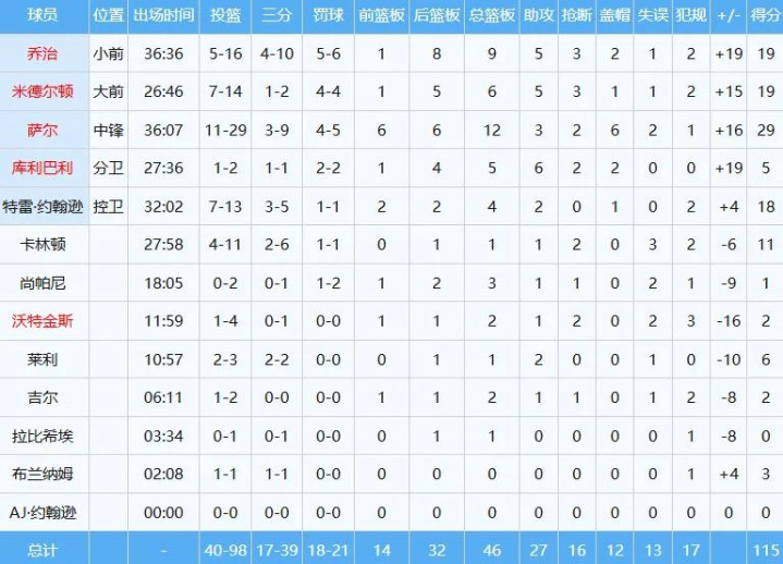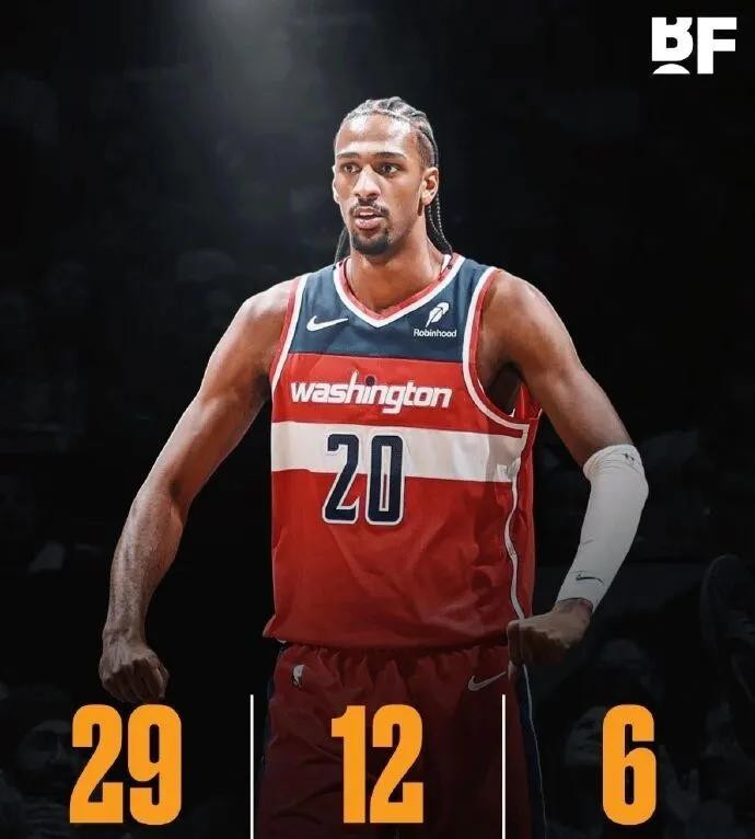 奇才那边,24届榜眼秀萨尔打出生涯之战,出手29次中11球,砍下29分12板3助2断6帽,正负值+16,与克林根(14分20板,正负值-17)对位中更胜一筹。