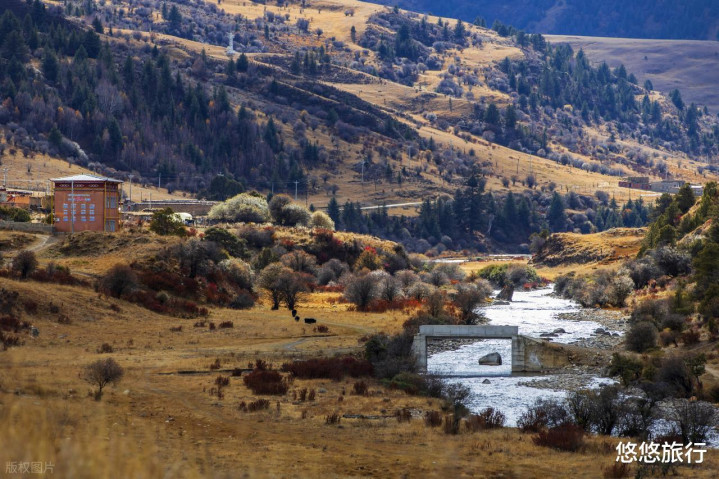 热梯河谷集合了雪山、冰川、草原、森林、河曲等景观。则巴村有孤柏与格聂雪山同框,雪山夹缝中的冷古寺,周围雪山巍峨,秋季色彩丰富。10月中旬黄叶转枯叶,部分地区下雪。