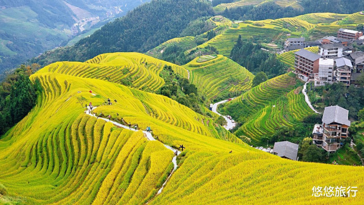 9月的龙脊梯田,抹茶绿叠着黄绿,稻谷渐黄的“金色阶梯”,层层梯田绕着吊脚楼,日出时金光洒在稻穗上。10月上旬金灿灿的梯田,红褐交错,秋日氛围感拉满。10月中旬开始收割,最佳观赏期刚好与国庆假期重合。