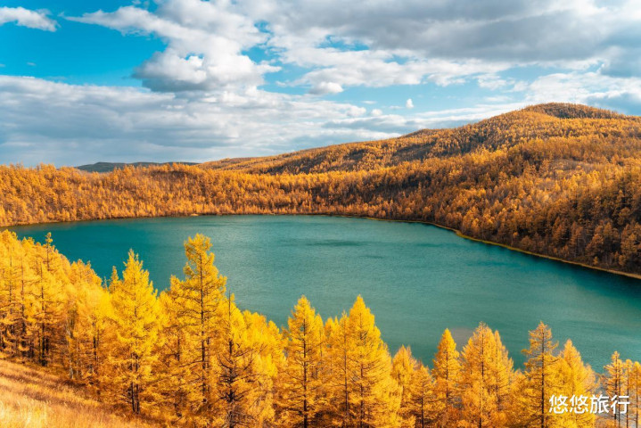 阿尔山的火山地貌、森林湖泊,一如既往发挥稳定。兴安落叶松、白桦、黑桦的叶片被镀上一层金色,将山峦染成一片暖色调的海洋。
