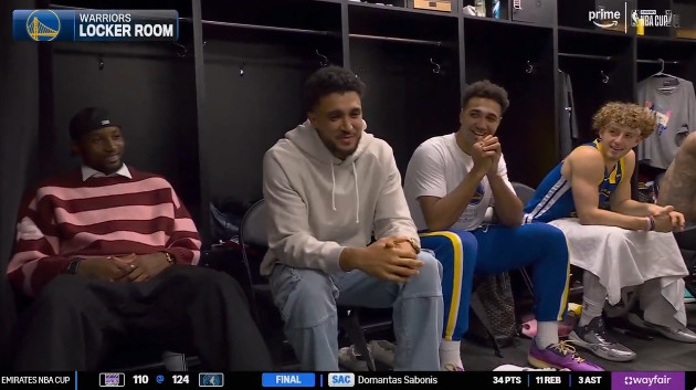 随后,亚马逊的全美直播镜头对准了罗,他获得了一个非常珍贵的宣传时刻,罗有些腼腆,他说:“额……上帝保佑过库里……”惹得更衣室笑成一片。