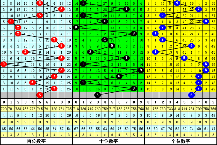 十位:1、2路号较热,本期防0路号反弹,关注3。