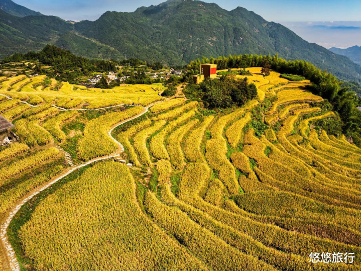 云和梯田的金色麦浪,从10月下旬持续到11月上旬,层层叠叠的梯田像是瀑布一般倾泻下来。