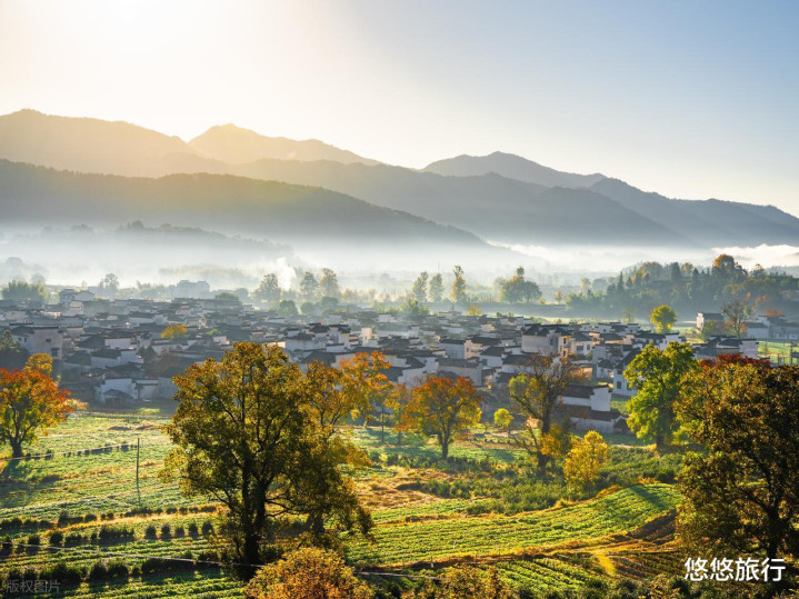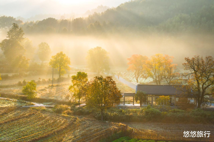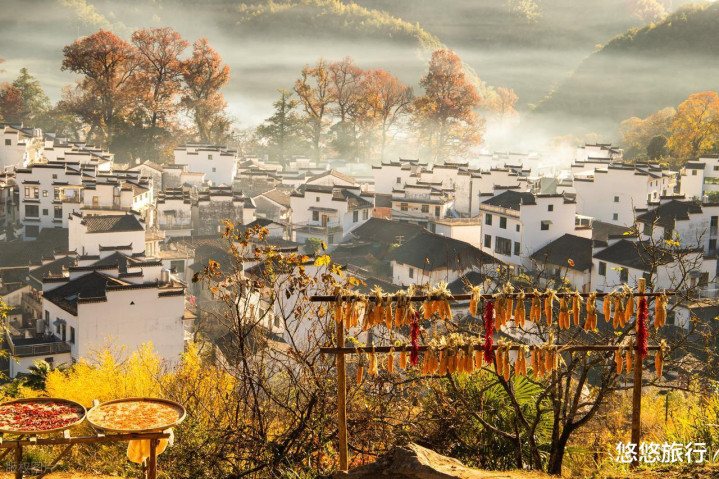 10月底开始,宏村外围田野是金色稻田,南湖月沼之间是水墨徽州古村落。紧邻宏村的奇墅湖,秋冬时节水杉林变红,晨雾时分自带几分仙气。