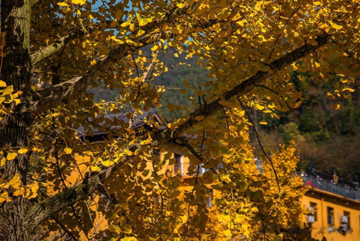 其中银杏景观最为有魅力,此时银杏叶由绿转黄,渐渐飘落,宛如一场金色的雨!而且,搭配着各种其他元素,可谓是深秋时节最美的风景!